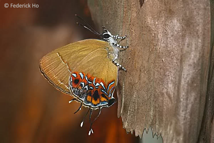 This diminutive Lycaenid has an interesting scientific name, almost declaring it a “superbly delicious” butterfly! This species is the only one of its genus found in Malaysia and Singapore. Semanga superba deliciosa is a fast flying butterfly and frequents open areas on the fringes of the nature reserves as well as urban parks and gardens. It has been known to feed on a number of host plants and are associated with ants during its early stages. Its early stages has been recorded here.