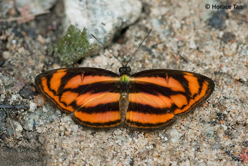 Nevertheless, we record this seasonal migratory species (or seasonal stray) as species #312 in the Singapore Butterfly Checklist. Thanks to Yi Kai for spotting and getting photographic evidence of this species in Singapore, and contributing his photos to ButterflyCircle. The Striped Jay is considered a seasonally common lowland species in Malaysia, and often photographed amongst large numbers of puddlers at sandy streambanks in the forested areas. It is a fast-flyer like its other cousins in the Graphium genus and is certainly possible that it flew over from nearby Johor, aided by the winds.